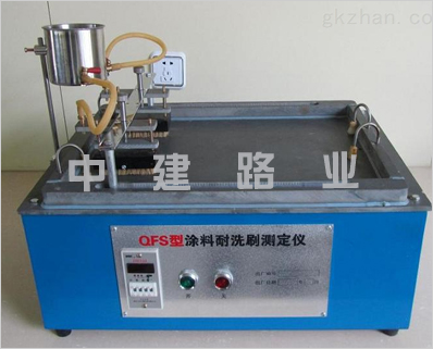 QFS型涂料洗刷性测定仪是依据GB/T9266《建筑涂料涂层耐洗刷性的测定》的规定而设计制造的。同时满足新国标GB/T9755-2014试验要求。适用于测定建筑涂料涂层(平面状)的耐洗刷性。是科研计量及涂料生产厂的必备检测仪器。 QFS型涂料洗刷性测定仪主要参数: 1、刷子及刷架总重量为450g。 2、刷子运动频率为每分钟往复37次。 3、刷子单行程运动距离为300mm。 4、计数器为4位。 5、电源电压为220V,50HZ。