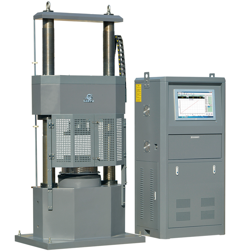 YAW-2000D型电液伺服压力试验机是采用了液压动力源驱动,电液伺服控制技术,计算机数据采集处理,可实现闭环控制及自动检测的高精度材料试验设备,其由试验主机、油源(液压动力源)、测控系统、试验器具四部分组成,试验力2000kN。